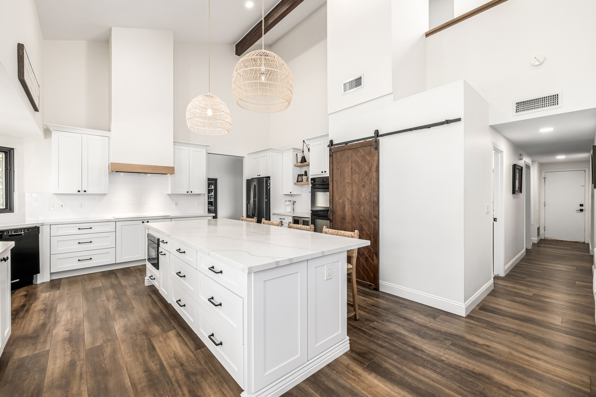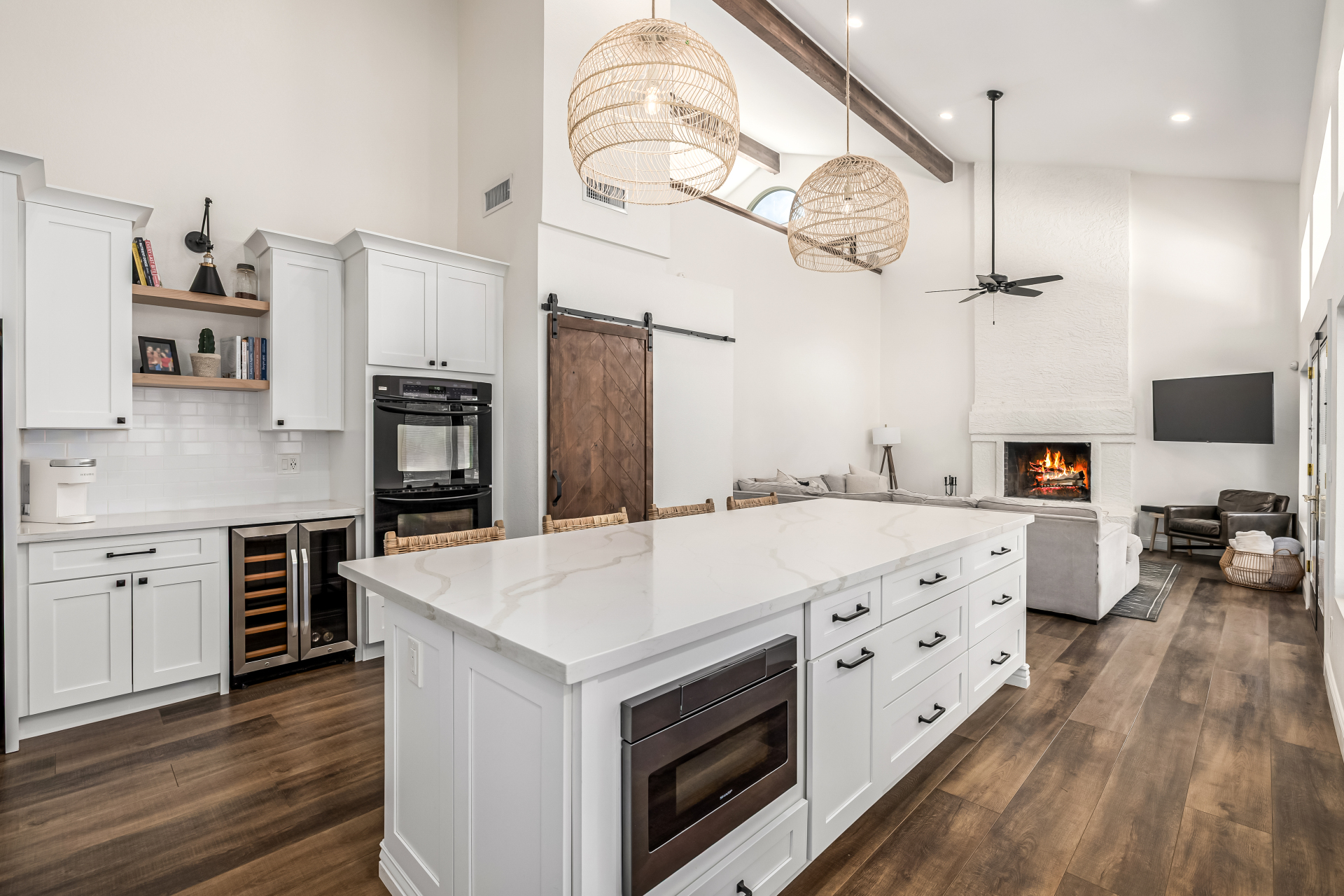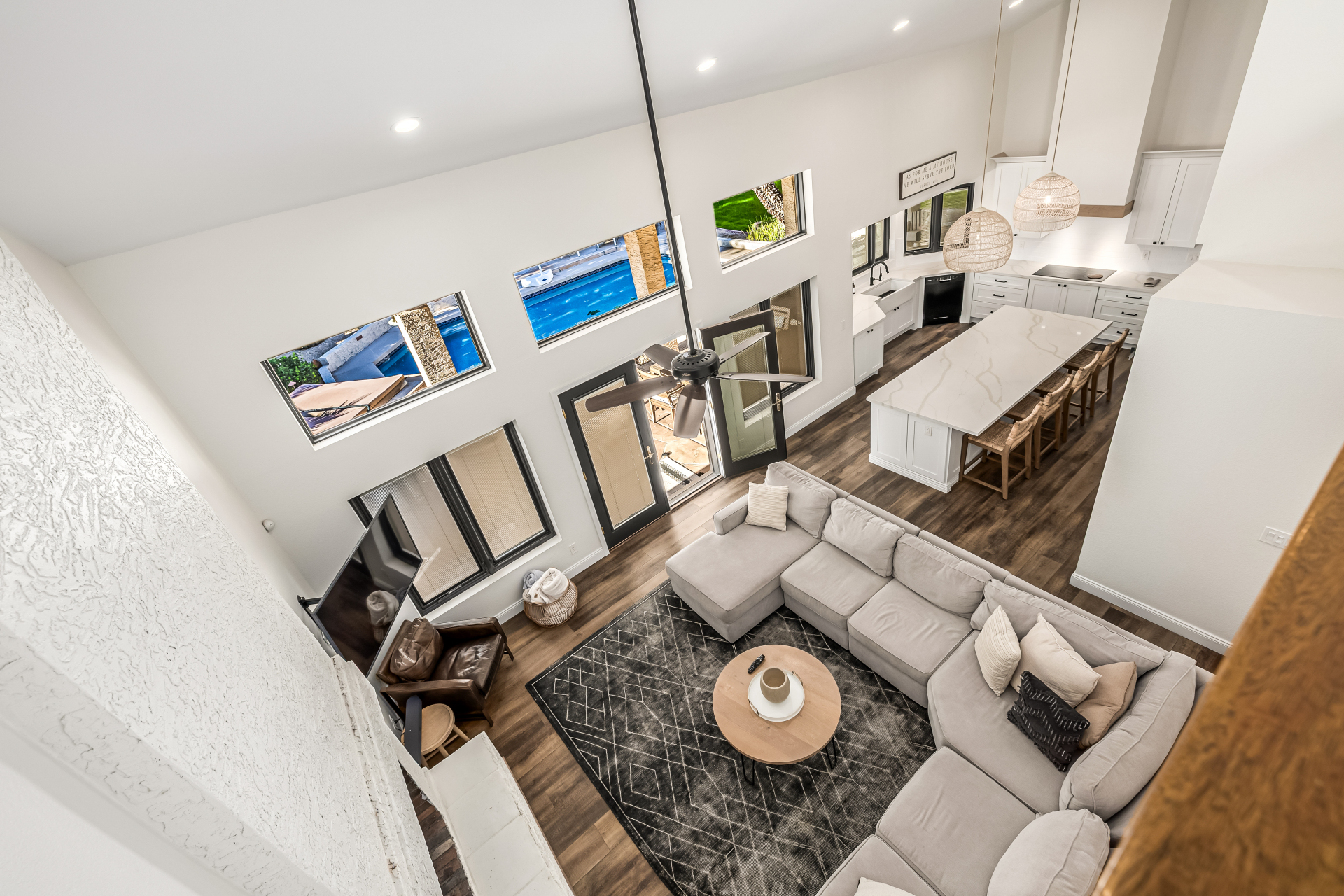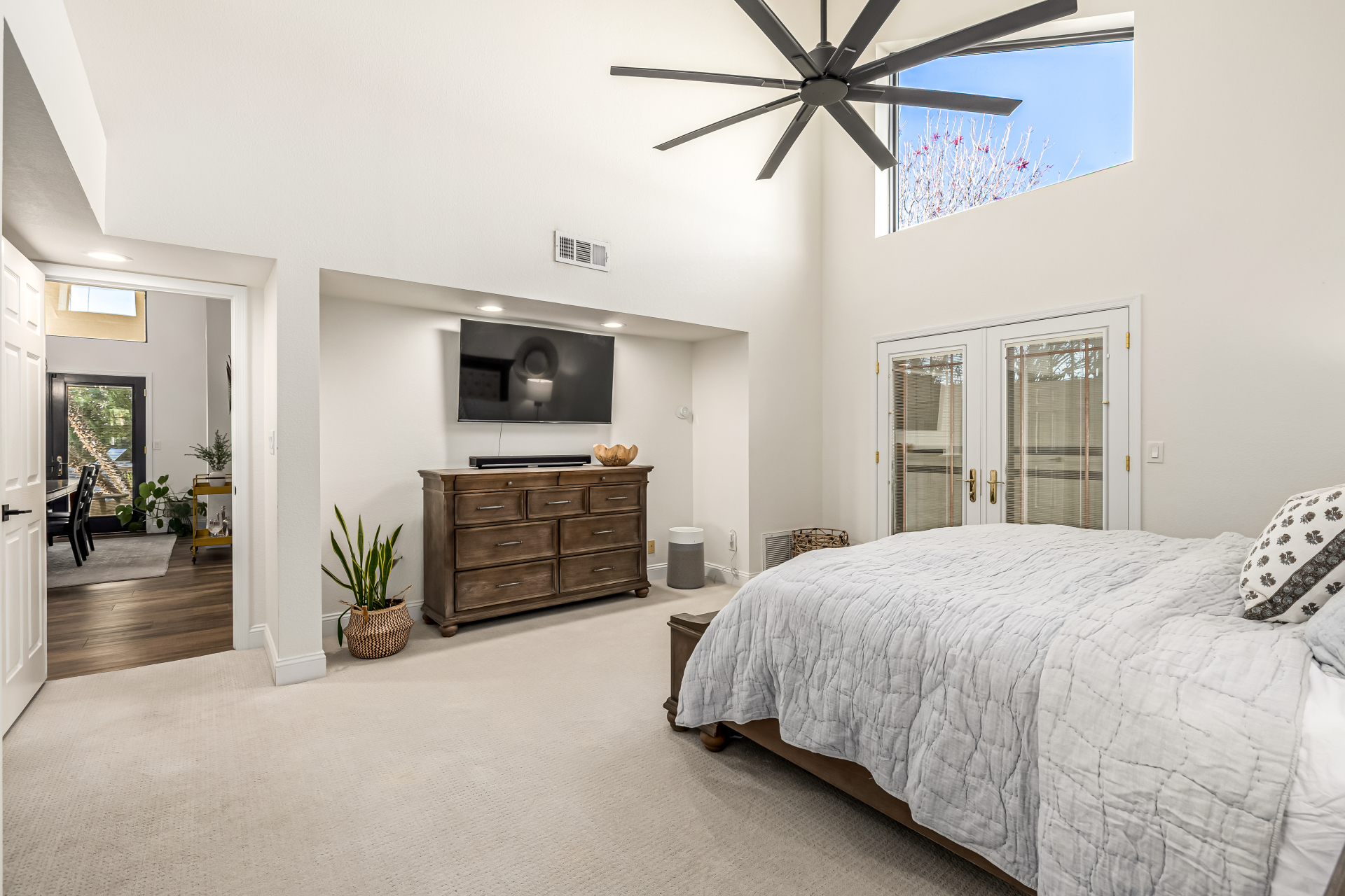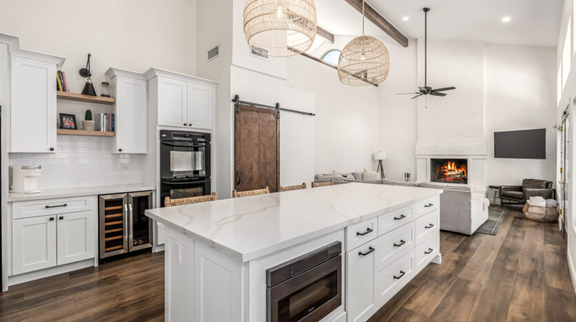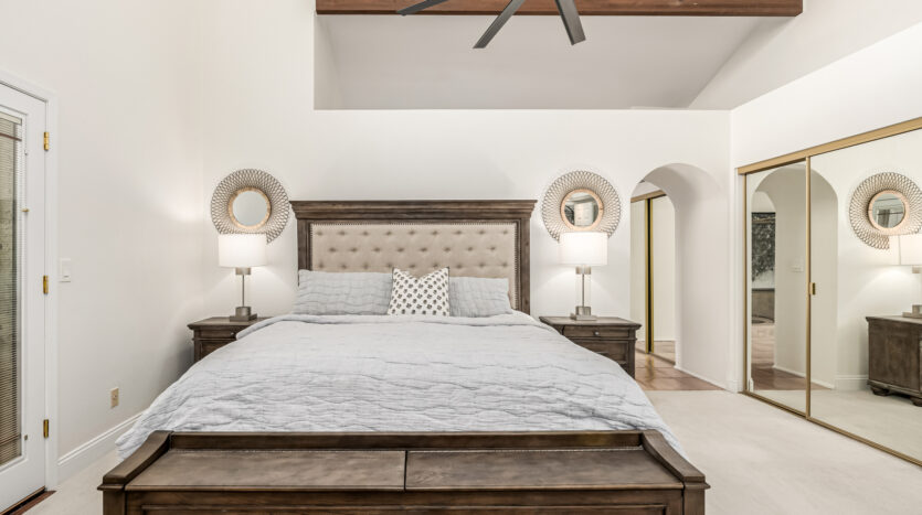 Beautifully updated home in sought-after Scottsdale Ranch! This spacious residence offers the owner’ suite + 3 bedrooms on the main level, 3.5 bathrooms, and an upstairs loft with closet and full bath—perfect for guests, teens, or a private retreat. Thoughtful upgrades include luxury vinyl plank flooring throughout the main living areas, newer tile in the powder bath, newer carpet in bedrooms, bonus room, and office (2022), expanded kitchen with new cabinetry & island, quartz countertops, beverage refrigerator, large pantry, updated cabinets in the powder bath and hall bath, new light fixtures, upgraded baseboards, fresh interior paint, and new garage cabinetry (2022). The open, light-filled floor plan flows seamlessly to the backyard private oasis featuring resort